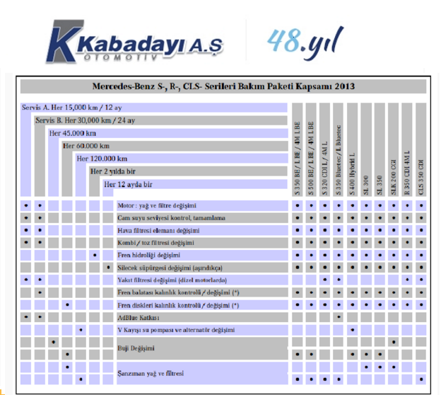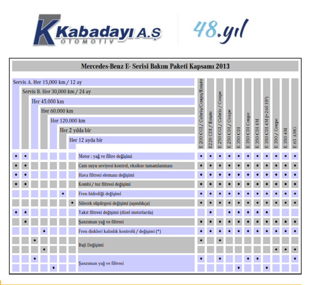 | Mercedes E/CLS Serisi - Bakım Çizelgesi |