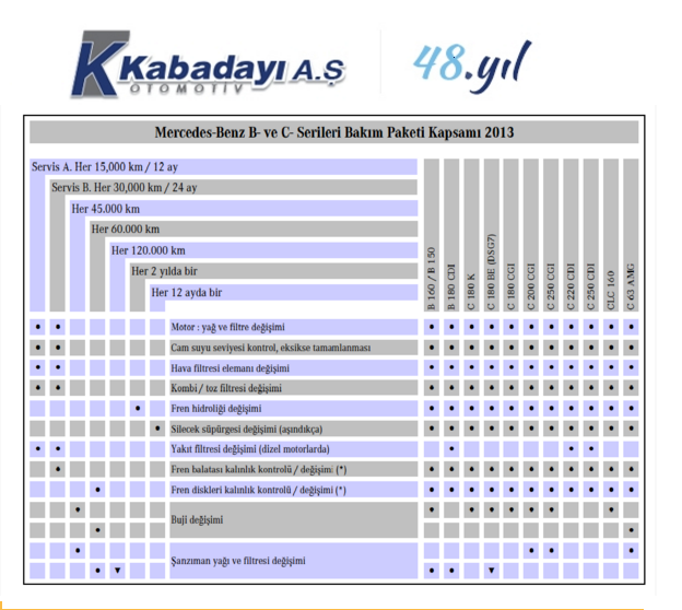 | Mercedes A/B/C/CLA Serisi - Bakım Çizelgesi |